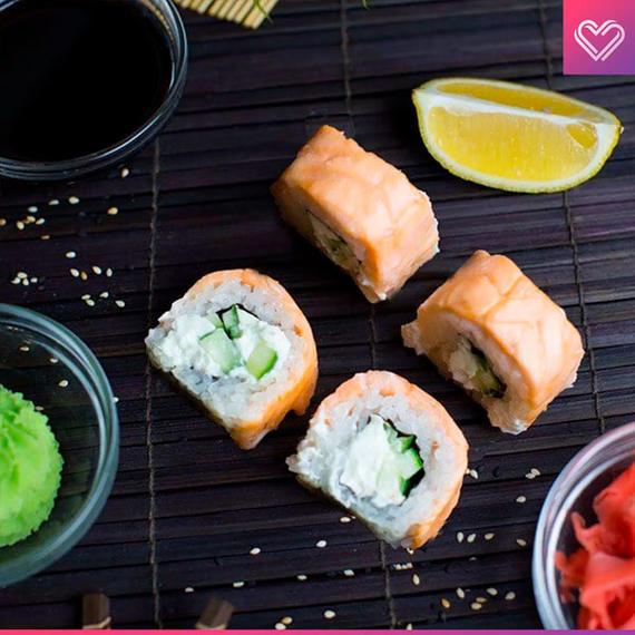 Огурец, томаго, семга, спайси соус