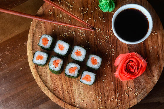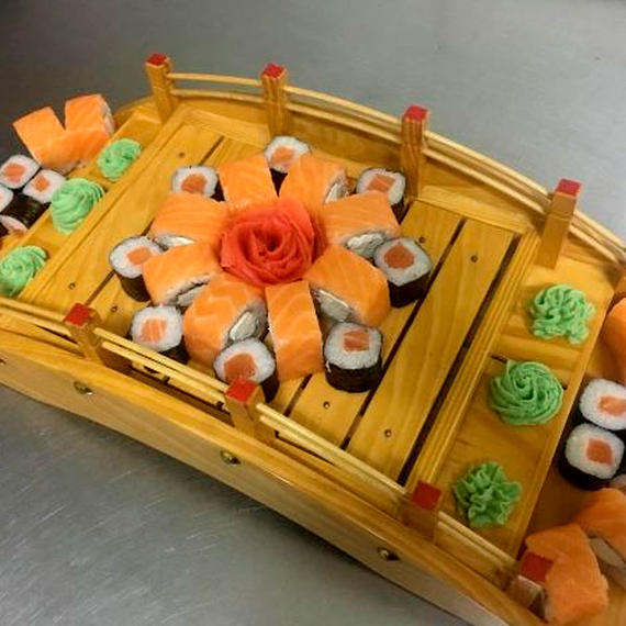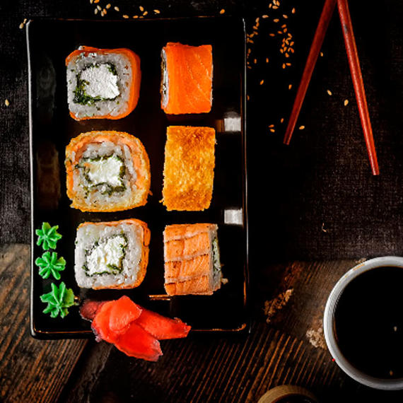 Филадельфия, Жаренный с лососем, Калифорния с крабом, Хосомаки с лососем, Бонито с лососем