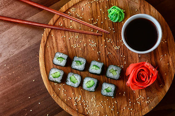 Филадельфия, Жаренный с лососем, Калифорния с крабом, Хосомаки с огурцом, Хосомаки с лососем