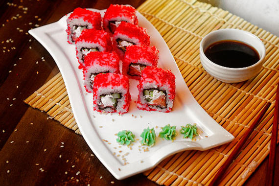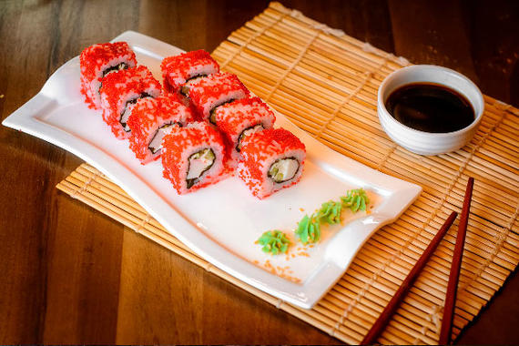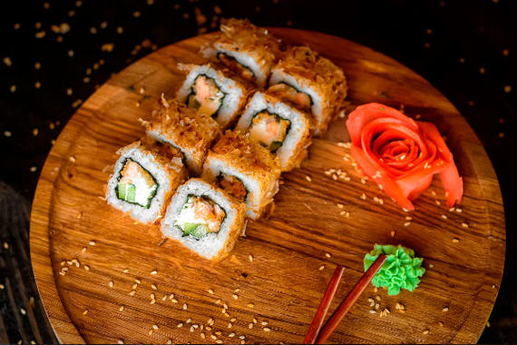 Рис, нори, сыр, краб, огурцы, икра тобико
