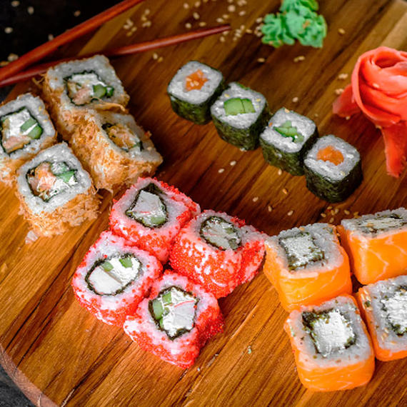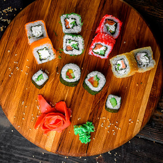Филадельфия, Хоккайдо, Каппа сяки, Калифорния с крабом, Сакура, Аляска, Хосомаки с лососем, Хосомаки с огурцом, Хосомаки с чуккой
