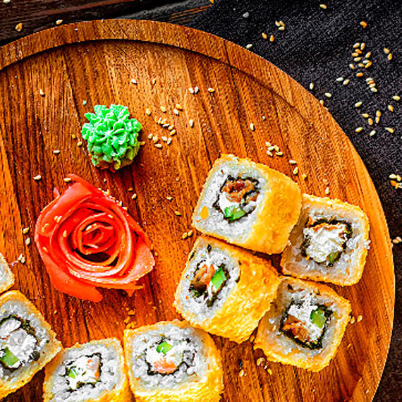 Филадельфия, филадельфия жареная, жареный с лососем, хосомаки согурцом, хососмаки с лососем