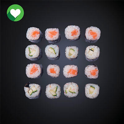 Аляска маки x2, Филадельфия x2, Америка маки x2, Каппа маки x2, Сяки маки x2.