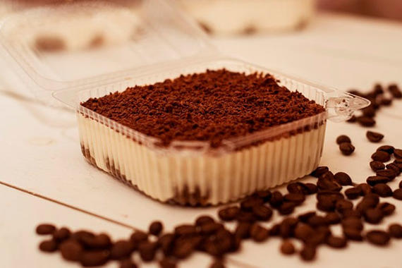 Десерт Тирамису: печенье Савоярди, пропитанные кофе, покрыты нежным кремом на основе сыра и сливок, сверху посыпается крошкой молочного шоколада.