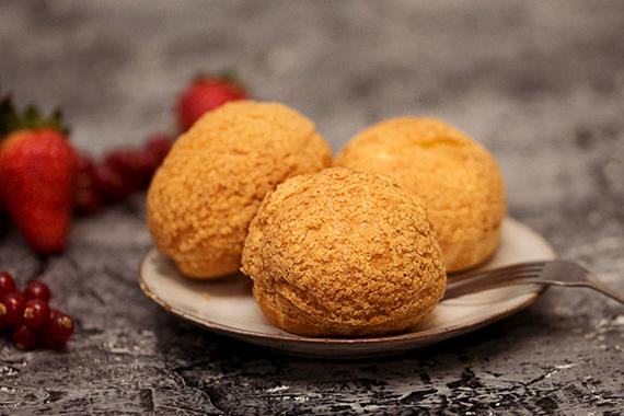 Малыши-пирожные Шу, заварное тесто, сверху с хрустящим крамблом, и нежным кремом внутри.